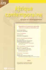 Population and Natural Resources No 229, 2009/1 - pagesPages 5 to 8EditorialPages 17 to 20IntroductionBy Jean-Philippe PlatteauPages 21 to 42Dealing with ChangeBy Jared DiamondPages 43 to 70Forest Degradation in the Himalayas and the Role of the StateBy Jean-Marie BalandPages 71 to 77Commentary on an Article by Jean-Marie BalandBy Eswaran SomanathanPages 79 to 85Commentary on an Article by Jean-Marie BalandBy Denis LoyerPages 87 to 135Confronting the Oil CurseBy Alan Gelb, Sina GrasmannPages 137 to 141Commentary on an Article by Alan Gelb and Sina GrasmannBy Thomas SternerPages 143 to 149Commentary on an Article by Alan Gelb and Sina GrasmannBy Pierre-Noël GiraudPages 151 to 170Encouraging Innovation through Investment and Solving the Conundrum of Rural FinanceBy Michael R. CarterPages 171 to 174Commentary on an Article by Michael CarterBy Michel GriffonPages 175 to 180Commentary on an Article by Michael CarterBy Ernest AryeeteyPages 181 to 196The Shattered Ideal of Good Governance: Consequences for Official Development AssistanceBy Nicolas Meisel, Jacques Ould Aoudia