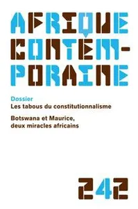 The Taboos of Constitutionalism in Francophone Africa No 242, 2012/2 - pagesPages 7 to 9EditorialBy Jean-Bernard VéronPages 11 to 28South Africa and China: A Marriage of Convenience?By François LafarguePages 29 to 45Botswana and Mauritius: Two African Success StoriesBy Arthur SilvePages 47 to 51The Taboos of Constitutionalism in AfricaBy Jean du Bois de Gaudusson, Dodzi KokorokoPages 53 to 58The Taboos of Constitutionalism in AfricaBy Jean du Bois de GaudussonPages 59 to 71Identity and Democracy in Africa.By Guy Rossatanga-RignaultPages 73 to 86What is the Correct Constitutional Status for an African Head of State?By Fabrice HourquebiePages 87 to 97The Concept of Population in Constitutional Law.By Alain OndouaPages 99 to 113Some Reservations about the Election of the President by Universal SuffrageBy Ismaïla Madior FallPages 115 to 116Francophone Sub-Saharan AfricaBy Soubahimbane SambouPages 118 to 119The Constitutional Court, a Key Actor in the South African Constitutional ReformPages 120 to 121Armed Forces and Democracy in Africa, an Ambivalent Relationship to be NormalizedBy Alexis Essono OvonoPages 123 to 145ReviewsBy Pierre JacquemotPages 117 to 117The Idea of the Constitution in AfricaBy Dodzi Kokoroko