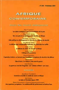 Le dossier thématique de ce numéro est consacré à un thème d’une grande actualité, la relation nouvelle et croissante entre l’actualité classique d’aide au développement et les questions de sécurité ou de maintien de la paix (comme de retour à celle-ci d’une manière durable). Ce dossier se distingue aussi par la diversité de ses contributeurs en mettant côte à côte, sur des thèmes parfois sensibles, des ministres, des acteurs du domaine public et para-public ainsi que des chercheurs et universitaires spécialisés dans les questions africaines.