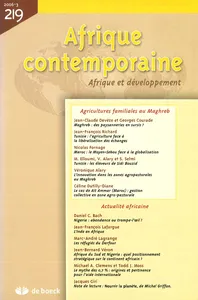 Afrique contemporaine consacre, pour la première fois, un dossier au Maghreb avec un recueil de six articles traitant des agricultures maghrébines,dossier qui poursuit la réflexion entamée avec un précédent dossier sur les agricultures familiales sub-sahariennes.