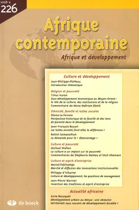 Tels sont les problèmes traités dans ce numéro spécial d’Afrique contemporaine qui reprend les actes de la conférence EUDN-AFD « Culture et développement » de novembre 2007, où des économistes ont accepté d’engager un dialogue avec les représentants d’autres sciences sociales.