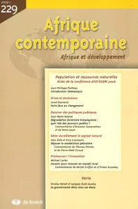 La pression exercée par l’homme sur son environnement est-elle soutenable à long terme ? Quelle intervention publique pour prévenir ou régler les tensions induites par la pression croissante sur les ressources naturelles et les situations de rareté ? Tels sont les problèmes traités dans ce numéro qui reprend les actes de la conférence « Population et ressources naturelles » organisée en novembre 2008 par le département de la Recherche de l’Agence française de développement (AFD), en collaboration avec le Réseau européen de recherche sur le développement (EUDN). Appuyé sur l’analyse d’expériences concrètes, chaque article est porteur d’enseignements pour dessiner les cadres institutionnels d’une gestion durable des ressources naturelles.